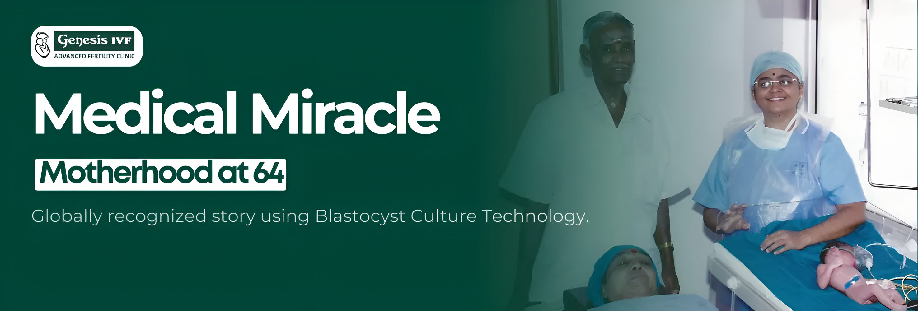 Genesis IVF gained global recognition for helping 64-year-old Mrs. Pappathi conceive through advanced Blastocyst Culture IVF, featured on the BBC website. The eldest parents of the universe, Mr. Subramaniam (74) & Mrs. Pappathi (64).